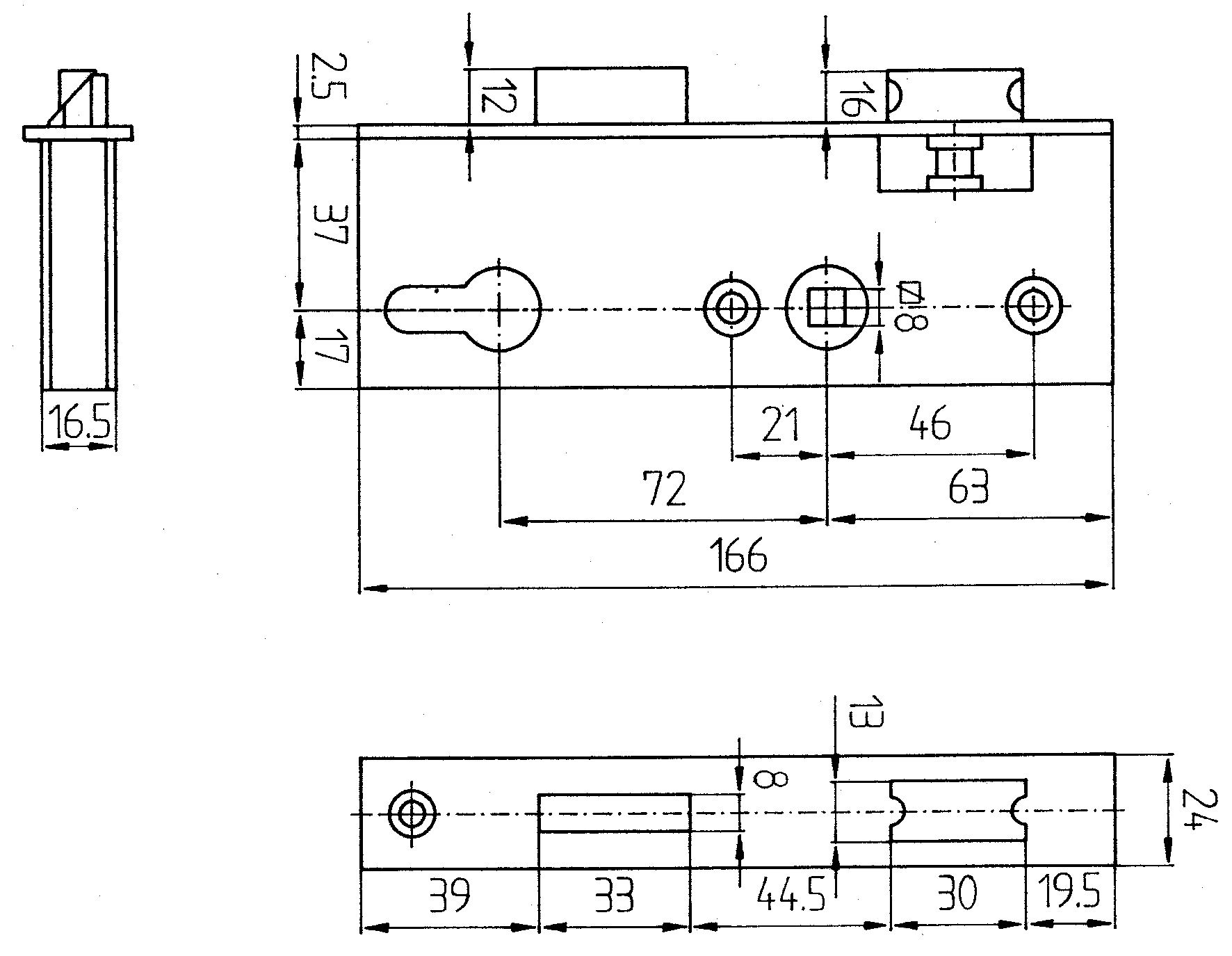 PZW 40/8/72; Stulp 24x166mm, für Schlosskasten 30mm